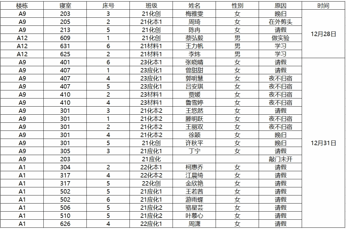 (2)若有员工在其他宿舍舍友可告知其返回核实;