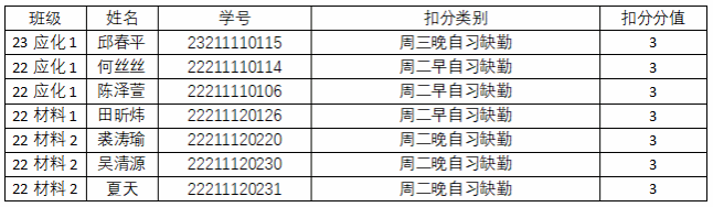 2、根据《qy球友会官网大一、大二早晚自习管理规定(201809修订)》,1次早、晚自习缺勤扣3分,学业发展部将在每周在“qy球友会官网”微信公众号平台公布本周考勤结果,如对公布的考勤结果有异议请当周周五下午4:30前到员工科办公室11B223说明情况,过时无效。22级、23级联系邹培杰老师。3、每周将在qy球友会官网官方网站上公布上周最终考勤结果。4、早晚自习考勤结果纳入月形象班级考核。