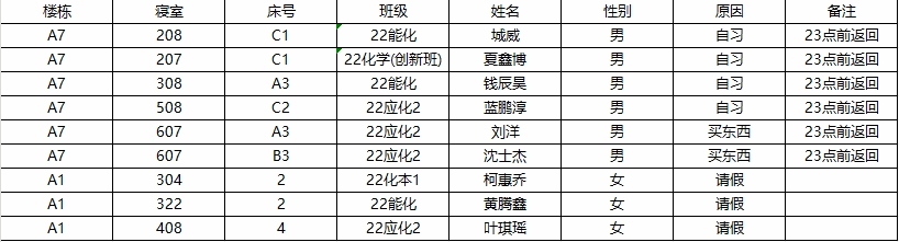 2.若在检查时间段内不在宿舍: