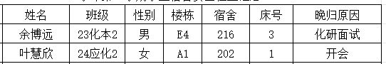 2.若在检查时间段内不在宿舍: