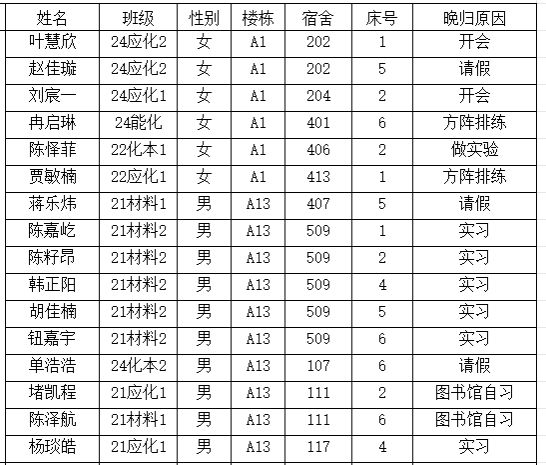 (4)若有员工检查期间未及时返回宿舍,于次日8点到16点之间由本人或委托人至年级辅导员处进行情况说明,逾期将对相关同学进行通报;