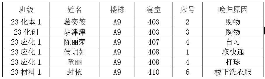 (4)若有员工检查期间未及时返回宿舍,于次日8点到16点之间由本人或委托人至年级辅导员处进行情况说明,逾期将对相关同学进行通报;