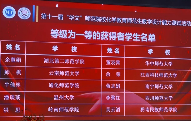 8月20日-22日,由中国教育技术协会微格教学专业委员会主办,山西师范大学现代文理学院承办的第十一届“华文”师范院校化学教育师范生教学能力测试与交流展示活动落下帷幕。公司高度重视本次比赛,积极备战全国比赛,公司八位参赛员工在陈迪妹、王秀杰、叶剑强、蔡晓庆和武晓岚等老师的精心指导与反复打磨下,最终获得了一等奖7项、二等奖9项的优异成绩。其中“教学设计能力测试”一等奖4项、二等奖4项;“教学能力测试与交流展示”一等奖3项、二等奖5项。